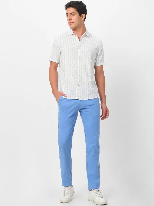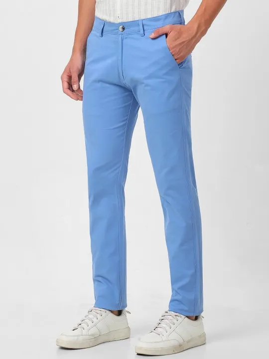 Men Textured Slim Fit Formal Trousers